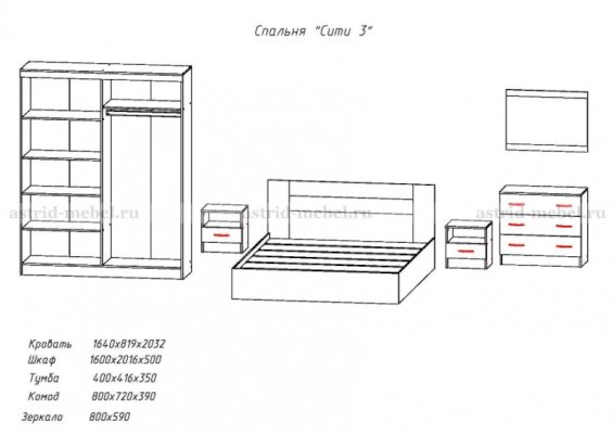 Спальный гарнитур Сити-3 (Астрид-Мебель)